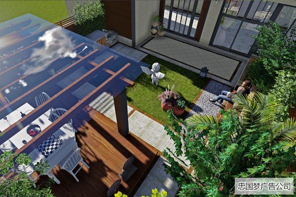 别墅后院环境景观设计 虽然后院是一个私有领域,但是其不同功能区域却对私密性程度要求也不相同。例如建筑门窗前的绿化区域为保证室内视线的通透,其对私密性的要求相对后院其他区域都要低,因此通常运用低矮的灌木,观赏性抢的植物来营造该区域的景观效果。通过绿色屏障实现家庭各自活动区域的空间分割,从而使人们获得相关的领域性。那下面我们华阳广告制作公司就来讲过后院环境景观设计: